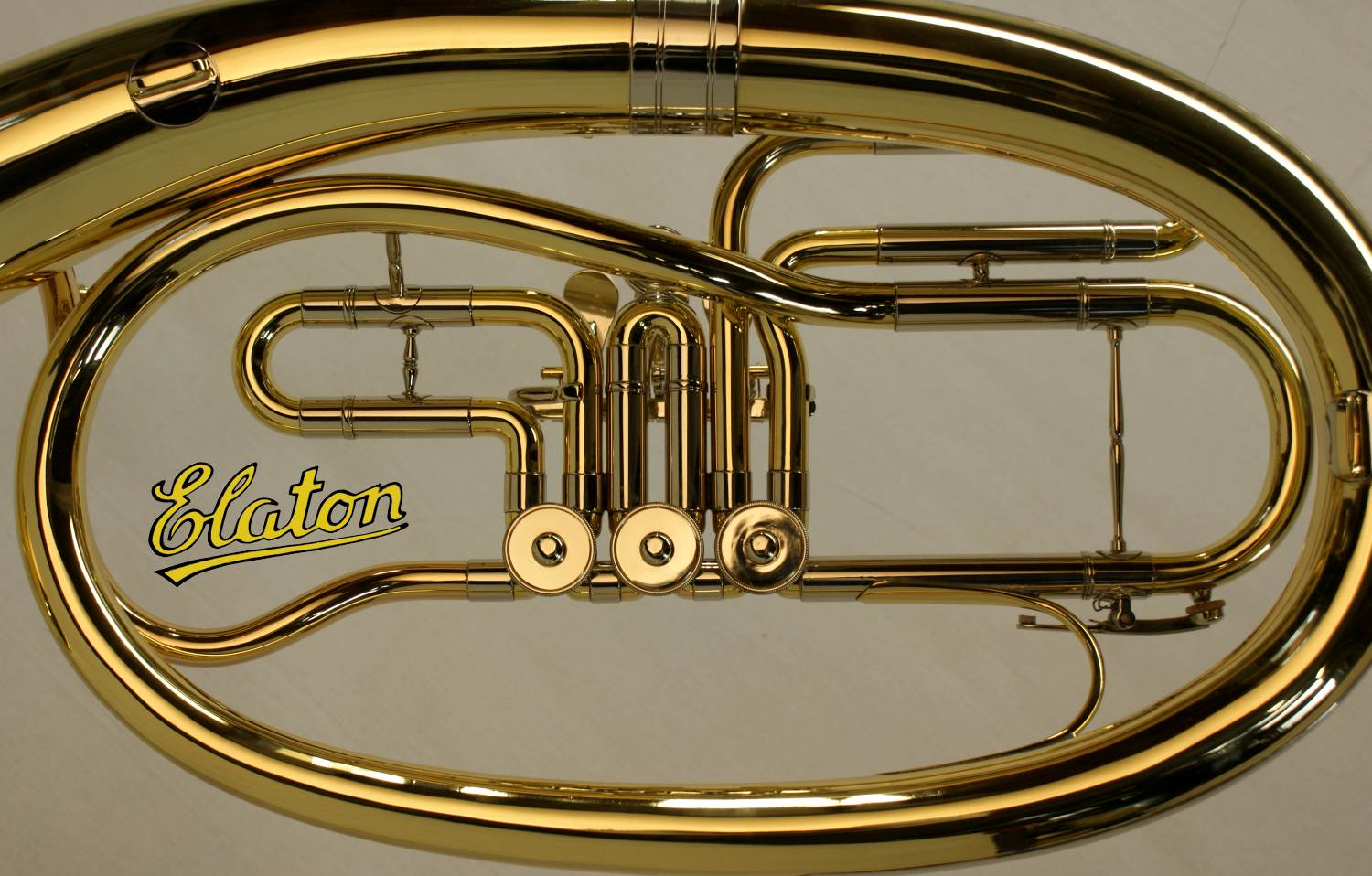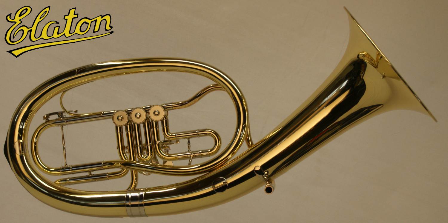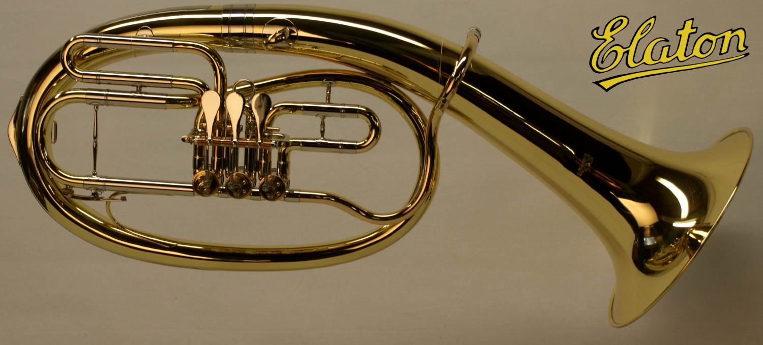 B-Tenorhorn "Elaton" LTH-70163 - weite Bauart - Messingkorpus - einbrennlackiert - Neusilberzuege innen und aussen - Spiraldrueckwerk - Doppel-Minibalgelenke - 3 Zylinderventile - Goldmessingmundrohr - Mundstueck