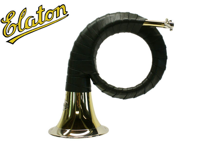 B-Fuerst-Plesshorn weite Bauart, Messingkorpus, mit echter Lederwicklung, Tragriemen, Stimmzug, duennwandigem Schallbecher 13 cm, NS-Kranz, lackiert, Mundstueck versilbert