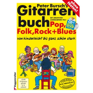 Das erfolgreichste Gitarrenbuch ohne Noten!Millionen von begeisterten Hobbygitarristen können nicht irren – Peter Bursch ist und bleibt der beliebteste und erfolgreichste Gitarrenlehrer Deutschlands. Seine gleichermaßen effektive und kurzweilige Lehrmethode verzichtet auf das Notenlesen und vereinfacht somit den Einstieg ins Gitarrenspiel. In den Regalen vieler namhafter Gitarristen hat dieses „gelbe Buch“ seinen festen Platz, weil auch sie nach der „Peter-Bursch-Methode“ gelernt haben. Der Lerninhalt des Buchs wird an Hand der enthaltenen CD und DVD akustisch und visuell vertieft. Peter Bursch kommt somit persönlich ins heimische Wohnzimmer und erklärt im wahrsten Sinne des Wortes anschaulich und auf seine sympathische Art, wie eine Gitarre gestimmt, gehalten und gespielt wird. Viele bekannte Liedbeispiele aus Pop, Folk, Rock & Blues (u.a. von Bob Dylan, den Scorpions oder Uriah Heep) sorgen für viel Spaß und Abwechslung beim Mitspielen. Die beiliegende CD enthält Songs und Übungen, die so langsam angespielt sind, dass jeder sie problemlos mitspielen kann. DIN A4, 160 Seiten, mit CD und Bonus-DVDISBN: 978-3-8024-0208-1