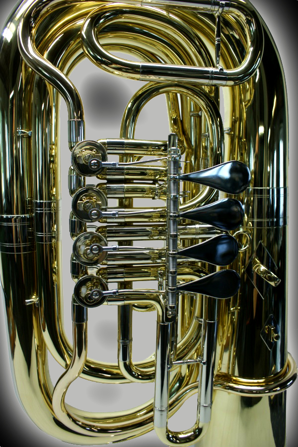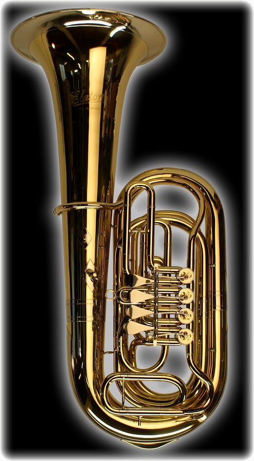 B-Tuba "Elaton" LBT-60394 - 3/4 Groesse - Messingkorpus - einbrennlackiert - 4 Zylinderventile - Spiraldrueckwerk - Doppel-Minibalgelenke - Neusilberzuege innen und aussen - Goldmessingmundrohr - Schallbecher 41 cm - Mundstueck