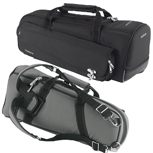 Gig Bag \"Performer\" für Trompete. DuPont Cordura mit 25 mm Polsterung und 12 mm Hartschaumeinsatz. BIPS verstärkte Schallbecherpartie, Panzerreißverschluss, Vortaschen für Zubehör und dick gepolsterte Rucksackgarnitur, Mundstücktasche, leichtes Gewicht und hohe Schutzwirkung. In schwarz oder anthrazit erhältlich.