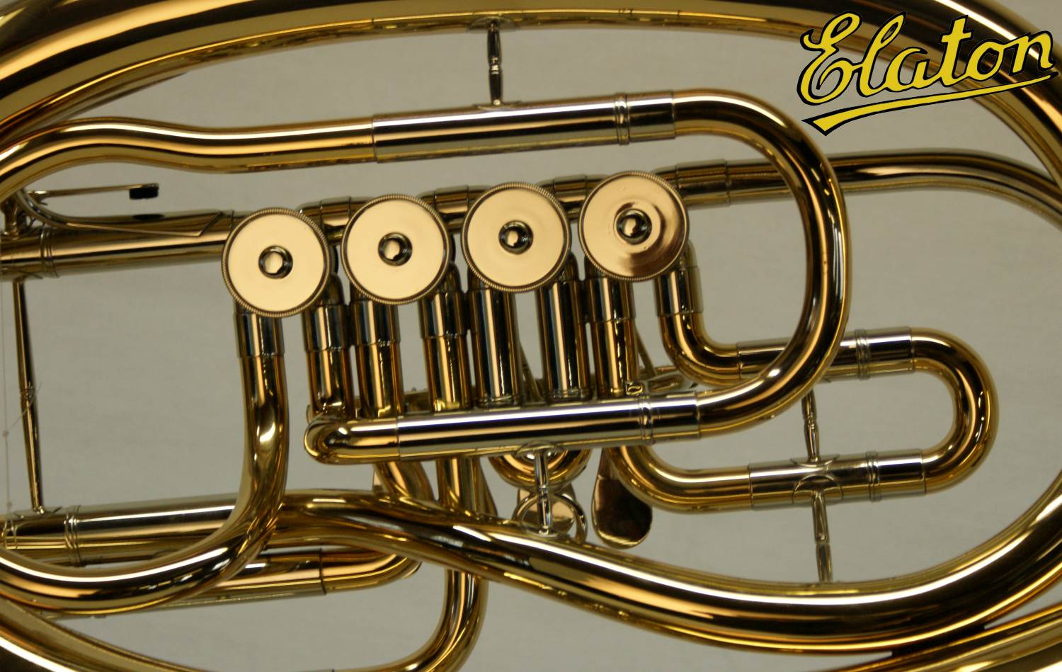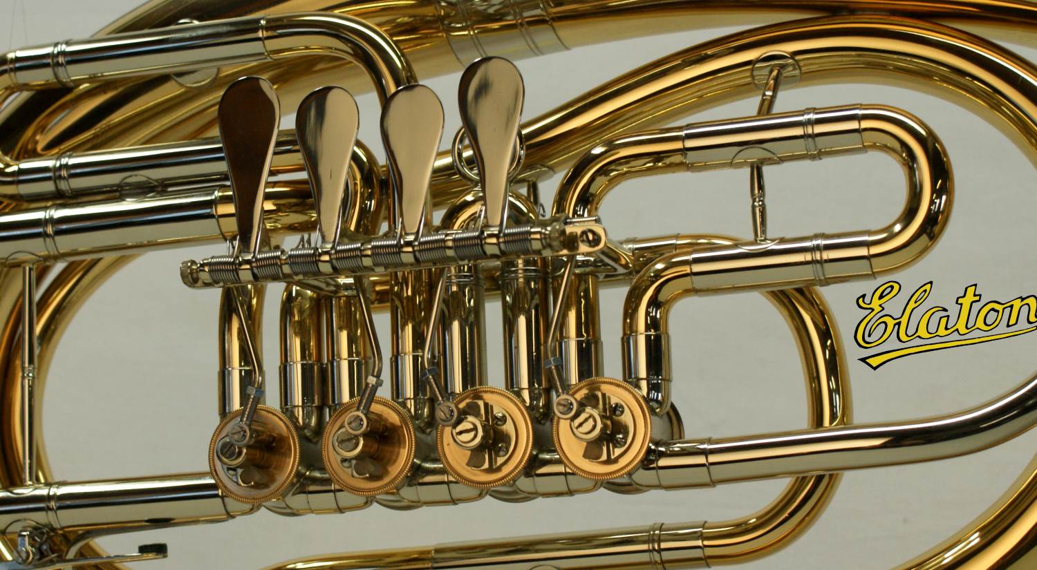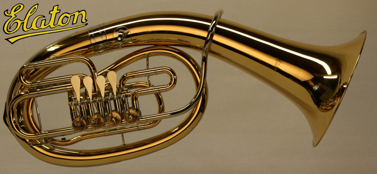 B-Bariton "Elaton" LBH-80284 - weite Bauart - Goldmessingkorpus - einbrennlackiert - 4 Zylinderventile - Spiraldrueckwerk - Doppel-Minibalgelenk - Neusilberzuege innen und aussen - Neusilbermundrohr - Mundstueck