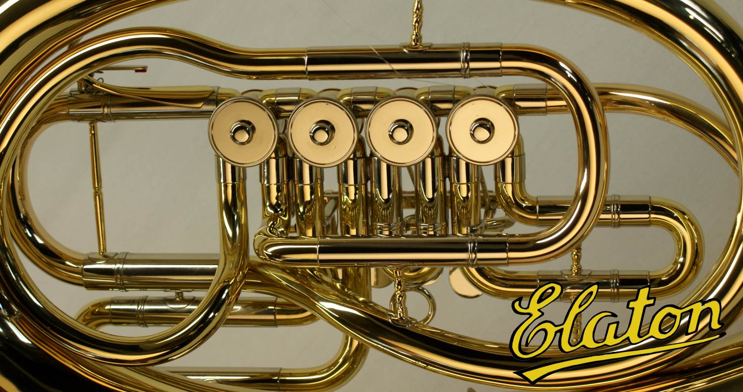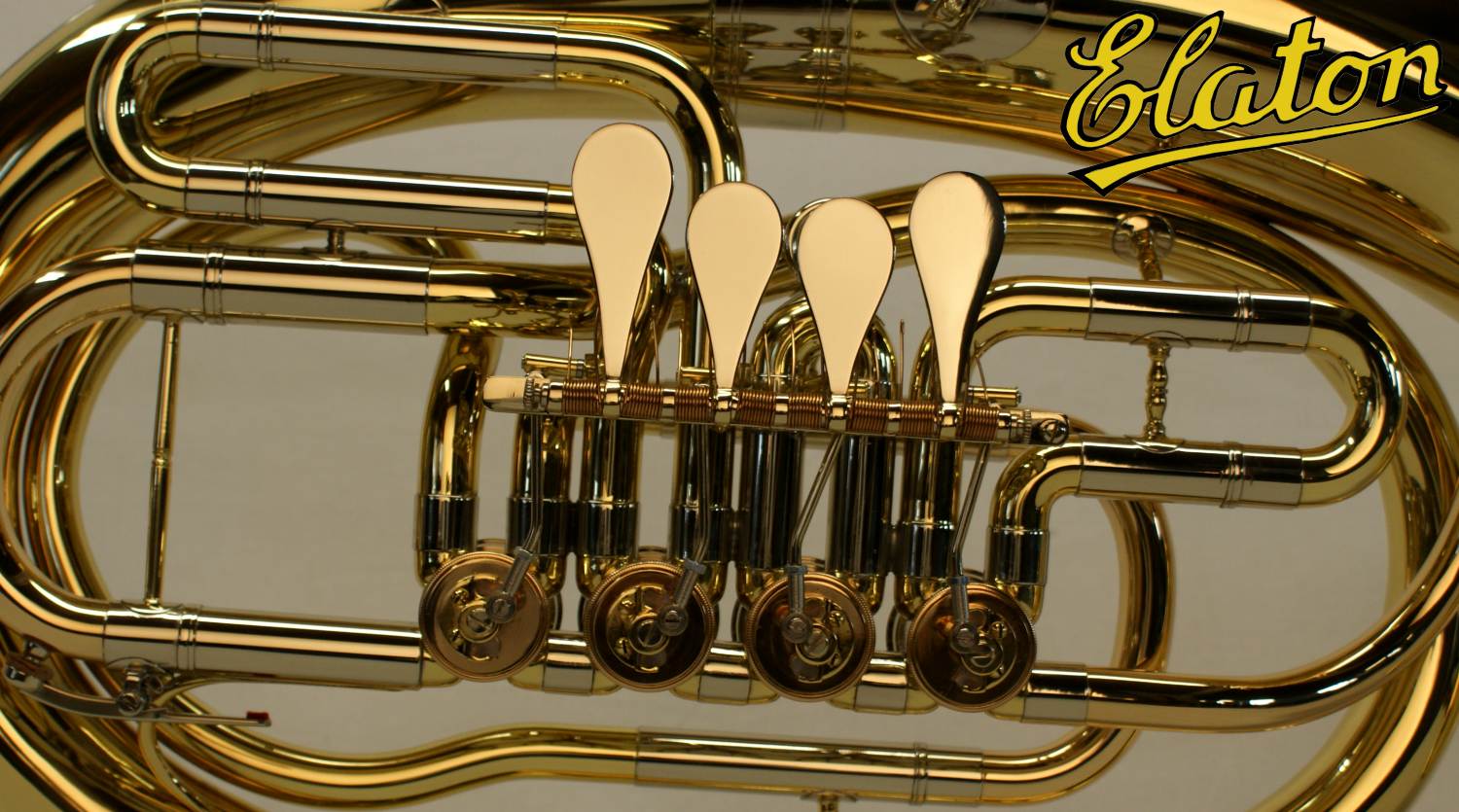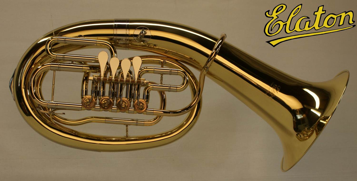 B-Kaiserbariton "Elaton" LKB-70304 - weite Bauart - Messingkorpus - einbrennlackiert - 4 Zylinderventile - Spiraldrueckwerk - Doppel- Minibalgelenke - Neusilberzuege innen und aussen - Goldmessingmundrohr - Mundstueck