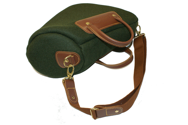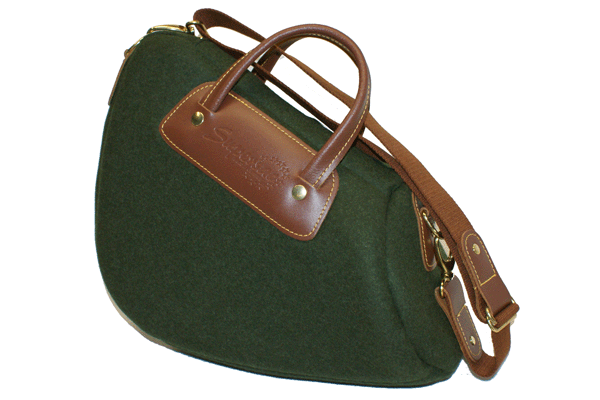 Fuerst-Plesshorntasche "Supersac", Loden, Reissverschluss, sehr starke Polsterung, Ledertragegriff und -aufsaetze, Trageriemen, edle Ausfuehrung, Schallbecherdurchmesser bis 15 cm
